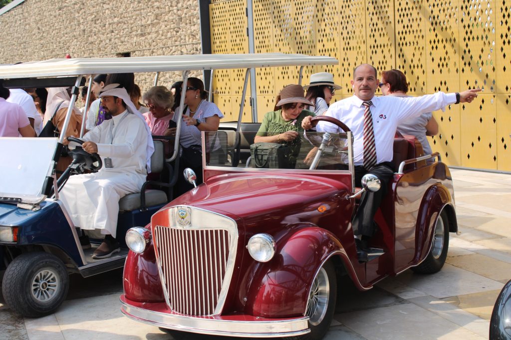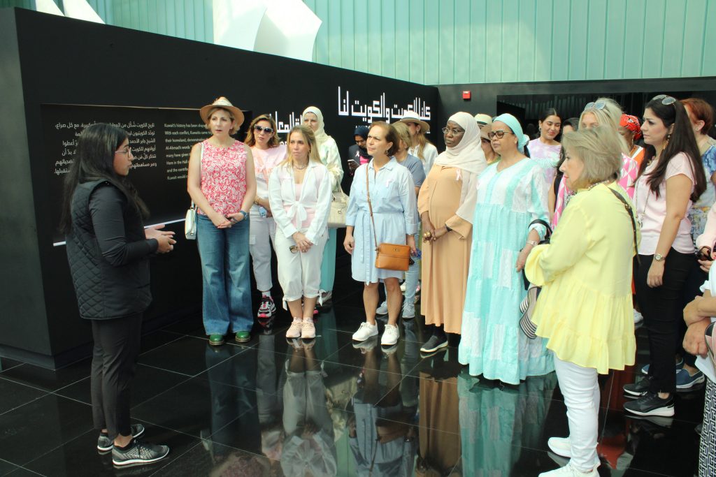 The tour began with a visit to the Martyr’s Monument, which is a seven-meter-high glass sculpture built to honor the martyrs of Kuwait, and then a visit to the Memorial Museum, which describes the most important battles of Kuwait, such as the Battle of Al Raqah, the Battle of Al Sireef, the Battle of Al Jahra and the invasion of Kuwait in 1990.