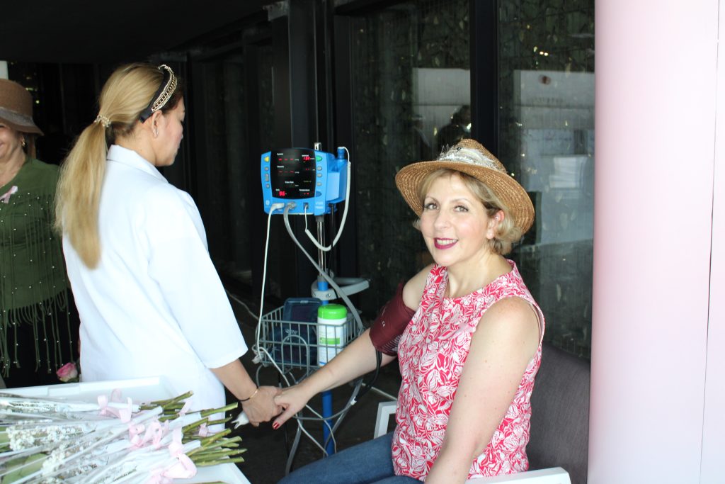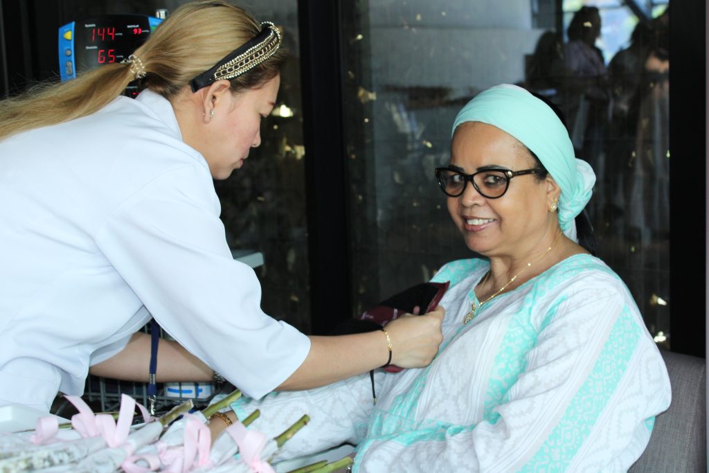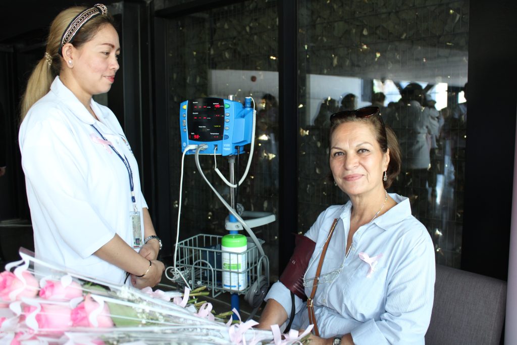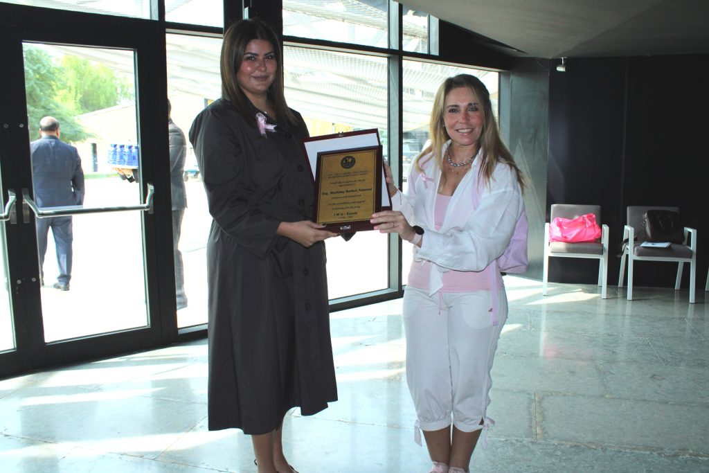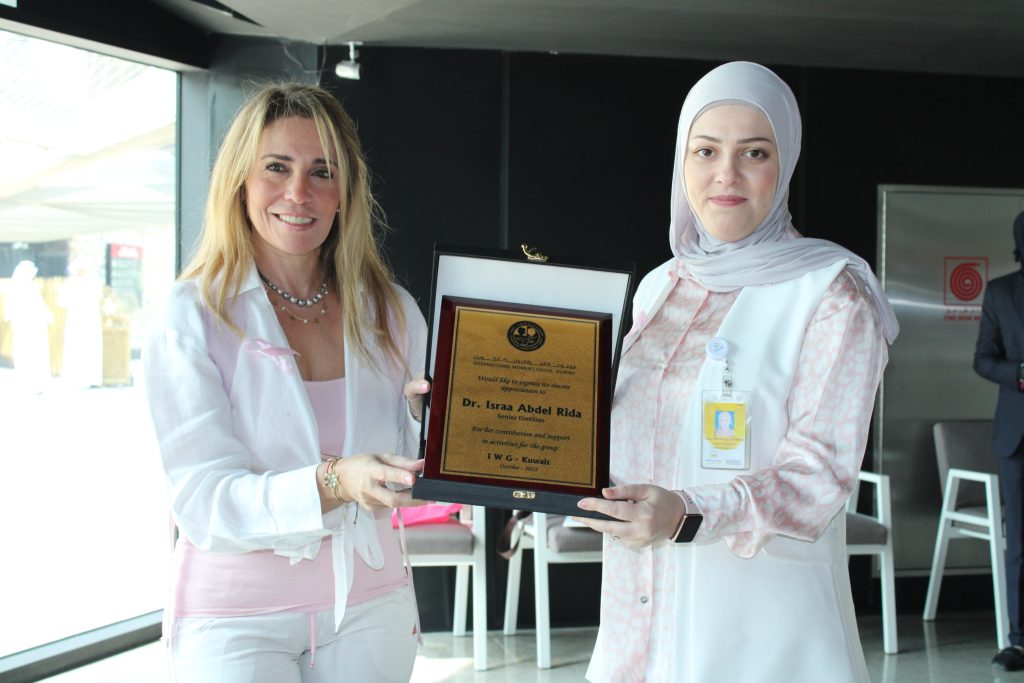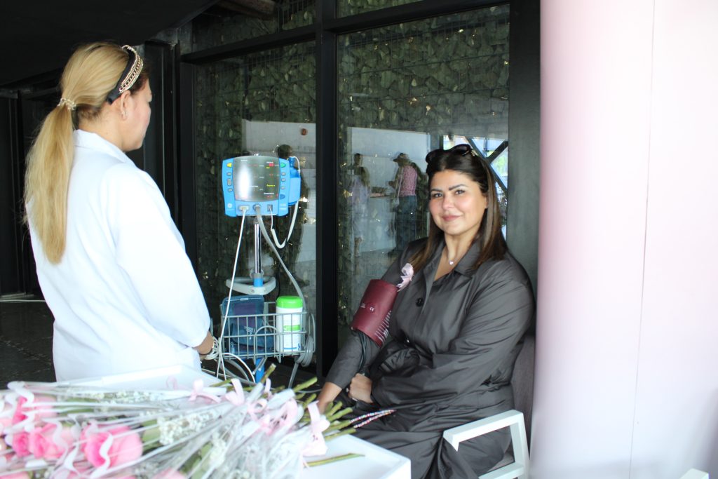 The hospital staff distributed Pink Ribbons and examined women’s blood pressure and sugar. Dr. Israa abdel Rida, senior dietitian, explained the important food safety directives that would fight breast cancer, and a symbolic gift was presented to the members and a discount coupon on special tests to detect breast cancer.